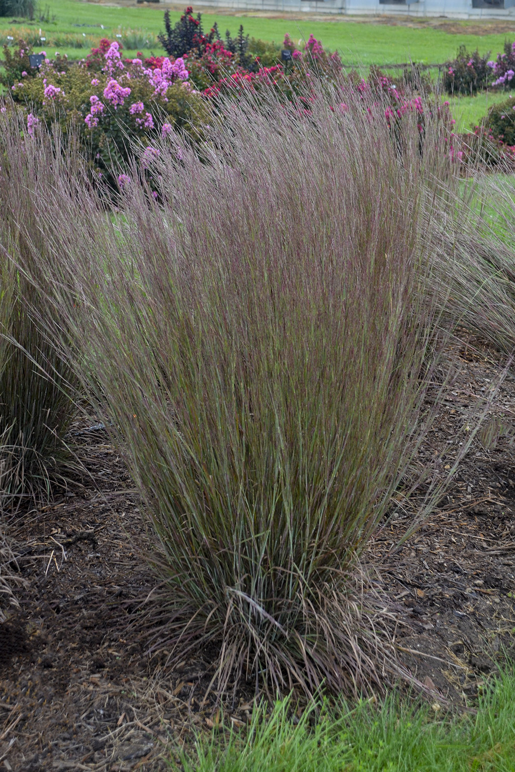 An upright ornamental grass that withstands adverse weather conditions. In summer, striking silvery blue stems form a columnar habit. Deep wine purple fall color.